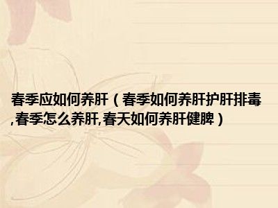 目前大家应该是对春季如何养肝护肝排毒,春季怎么养肝,春天如何养肝健脾比较感兴趣的,所以今天小编CC就来为大家整理了一些关于春季如何养肝护肝排毒,春季怎么养肝,春天如何养肝健脾方面的相关知识来分享给大家,希望大家会喜欢哦。