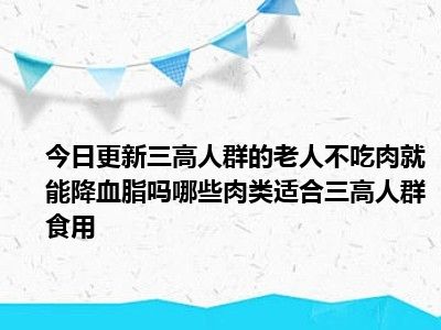 目前上述的内容应该能够为大家解答出大家对于三高人群的老人不吃肉就能降血脂吗哪些肉类适合三高人群食用的疑惑了,所以如果大家还想要了解更多的知识内容,也可以关注本站其他文章进行了解哦。