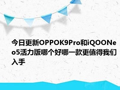 目前上述的内容应该能够为大家解答出大家对于OPPOK9Pro和iQOONeo5活力版哪个好,哪一款更值得我们入手的疑惑了,所以如果大家还想要了解更多的知识内容,也可以关注本站其他文章进行了解哦。