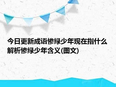 目前上述的内容应该能够为大家解答出大家对于成语惨绿少年现在指什么解析:惨绿少年含义(图文)的疑惑了,所以如果大家还想要了解更多的知识内容,也可以关注本站其他文章进行了解哦。
