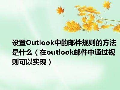 导读 1、在outlook邮件中通过规则可以实现2、在outlook邮件中通过规则可以实现:保持邮件秩序;保持邮件的最新状态;创建自定义规则,实现邮件管