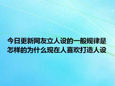 目前上述的内容应该能够为大家解答出大家对于网友立人设的一般规律是怎样的,为什么现在人喜欢打造人设的疑惑了,所以如果大家还想要了解更多的知识内容,也可以关注本站其他文章进行了解哦。