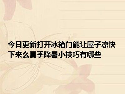 目前上述的内容应该能够为大家解答出大家对于打开冰箱门能让屋子凉快下来么夏季降暑小技巧有哪些的疑惑了,所以如果大家还想要了解更多的知识内容,也可以关注本站其他文章进行了解哦。