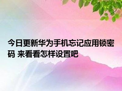 目前上述的内容应该能够为大家解答出大家对于华为手机忘记应用锁密码 来看看怎样设置吧的疑惑了,所以如果大家还想要了解更多的知识内容,也可以关注本站其他文章进行了解哦。