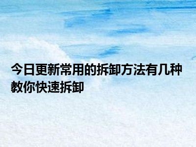 目前上述的内容应该能够为大家解答出大家对于常用的拆卸方法有几种 教你快速拆卸的疑惑了,所以如果大家还想要了解更多的知识内容,也可以关注本站其他文章进行了解哦。