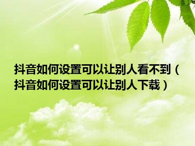1、 抖音如何设置可以让别人下载