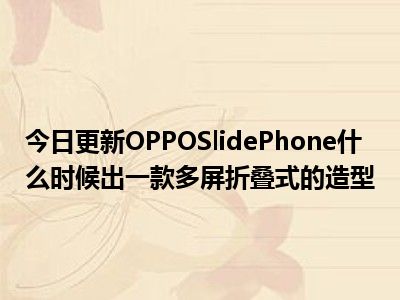 目前上述的内容应该能够为大家解答出大家对于OPPOSlidePhone什么时候出,一款多屏折叠式的造型的疑惑了,所以如果大家还想要了解更多的知识内容,也可以关注本站其他文章进行了解哦。