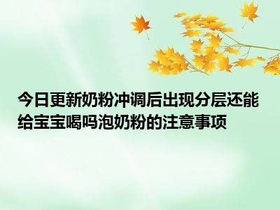 目前上述的内容应该能够为大家解答出大家对于奶粉冲调后出现分层还能给宝宝喝吗,泡奶粉的注意事项的疑惑了,所以如果大家还想要了解更多的知识内容,也可以关注本站其他文章进行了解哦。