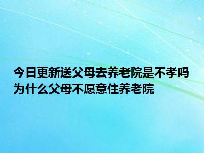 送父母去养老院是不孝吗将父母送到养老院一方面对老人好,也减轻自己的负担;另一方面很多人认为这种行为是不够尽孝的体现,那么送父母去养老院是不孝吗?