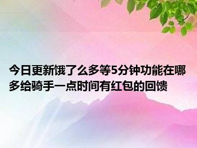 目前上述的内容应该能够为大家解答出大家对于饿了么多等5分钟功能在哪多给骑手一点时间有红包的回馈的疑惑了,所以如果大家还想要了解更多的知识内容,也可以关注本站其他文章进行了解哦。