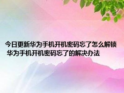 目前上述的内容应该能够为大家解答出大家对于华为手机开机密码忘了怎么解锁 华为手机开机密码忘了的解决办法的疑惑了,所以如果大家还想要了解更多的知识内容,也可以关注本站其他文章进行了解哦。