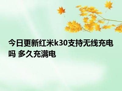 目前上述的内容应该能够为大家解答出大家对于红米k30支持无线充电吗 多久充满电的疑惑了,所以如果大家还想要了解更多的知识内容,也可以关注本站其他文章进行了解哦。