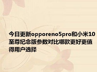 目前上述的内容应该能够为大家解答出大家对于opporeno5pro和小米10至尊纪念版参数对比,哪款更好更值得用户选择的疑惑了,所以如果大家还想要了解更多的知识内容,也可以关注本站其他文章进行了解哦。