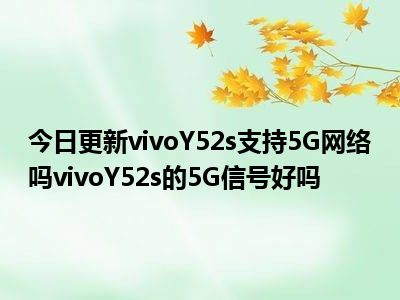 目前上述的内容应该能够为大家解答出大家对于vivoY52s支持5G网络吗,vivoY52s的5G信号好吗的疑惑了,所以如果大家还想要了解更多的知识内容,也可以关注本站其他文章进行了解哦。
