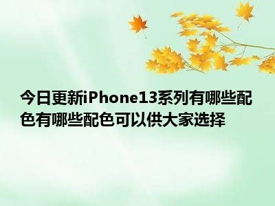 目前上述的内容应该能够为大家解答出大家对于iPhone13系列有哪些配色,有哪些配色可以供大家选择的疑惑了,所以如果大家还想要了解更多的知识内容,也可以关注本站其他文章进行了解哦。