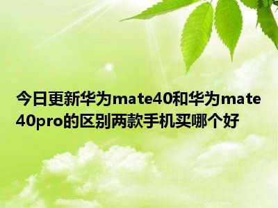 目前上述的内容应该能够为大家解答出大家对于华为mate40和华为mate40pro的区别,两款手机买哪个好的疑惑了,所以如果大家还想要了解更多的知识内容,也可以关注本站其他文章进行了解哦。