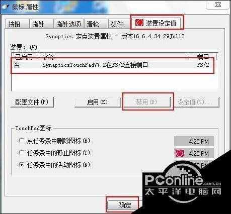 在鼠标属性里面点击“装置设定值”(不同驱动名称不同),找到触摸板装置,禁用就可以了。