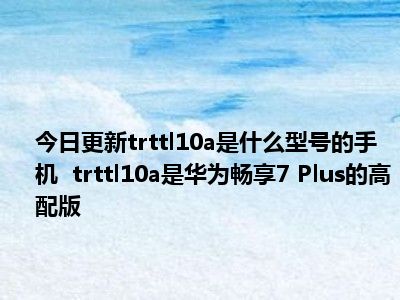 trttl10a是华为畅享7 Plus高配版手机的型号。配置方面,华为畅享7 Plus配置4GB+64GB存储芯片组合,配合高通八核芯片;拍照方面,华为畅享7 Plus前置800万像素镜头,后置1200万像素镜头。