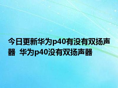 目前上述的内容应该能够为大家解答出大家对于华为p40有没有双扬声器 华为p40没有双扬声器的疑惑了,所以如果大家还想要了解更多的知识内容,也可以关注本站其他文章进行了解哦。