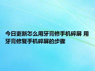 目前上述的内容应该能够为大家解答出大家对于怎么用牙膏修手机碎屏 用牙膏修复手机碎屏的步骤的疑惑了,所以如果大家还想要了解更多的知识内容,也可以关注本站其他文章进行了解哦。