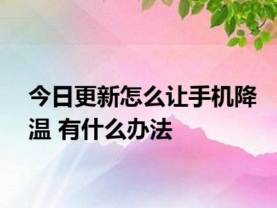 目前上述的内容应该能够为大家解答出大家对于怎么让手机降温 有什么办法的疑惑了,所以如果大家还想要了解更多的知识内容,也可以关注本站其他文章进行了解哦。