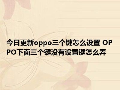 目前上述的内容应该能够为大家解答出大家对于oppo三个键怎么设置 OPPO下面三个键没有设置键怎么弄的疑惑了,所以如果大家还想要了解更多的知识内容,也可以关注本站其他文章进行了解哦。