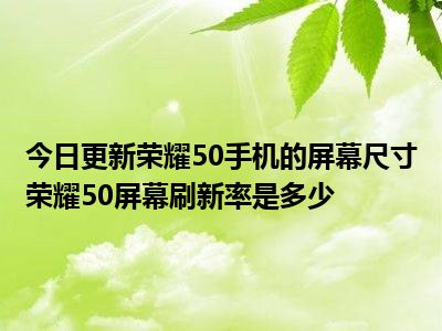目前上述的内容应该能够为大家解答出大家对于荣耀50手机的屏幕尺寸,荣耀50屏幕刷新率是多少的疑惑了,所以如果大家还想要了解更多的知识内容,也可以关注本站其他文章进行了解哦。