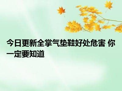 目前上述的内容应该能够为大家解答出大家对于全掌气垫鞋好处危害 你一定要知道的疑惑了,所以如果大家还想要了解更多的知识内容,也可以关注本站其他文章进行了解哦。
