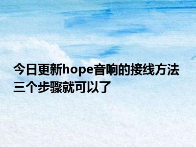 目前上述的内容应该能够为大家解答出大家对于hope音响的接线方法 三个步骤就可以了的疑惑了,所以如果大家还想要了解更多的知识内容,也可以关注本站其他文章进行了解哦。
