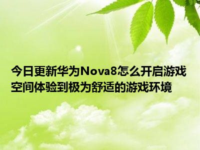 目前上述的内容应该能够为大家解答出大家对于华为Nova8怎么开启游戏空间,体验到极为舒适的游戏环境的疑惑了,所以如果大家还想要了解更多的知识内容,也可以关注本站其他文章进行了解哦。