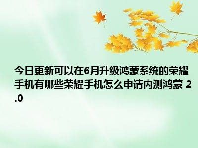 目前上述的内容应该能够为大家解答出大家对于可以在6月升级鸿蒙系统的荣耀手机有哪些,荣耀手机怎么申请内测鸿蒙 2.0的疑惑了,所以如果大家还想要了解更多的知识内容,也可以关注本站其他文章进行了解哦。