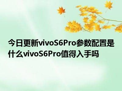 目前上述的内容应该能够为大家解答出大家对于vivoS6Pro参数配置是什么,vivoS6Pro值得入手吗的疑惑了,所以如果大家还想要了解更多的知识内容,也可以关注本站其他文章进行了解哦。