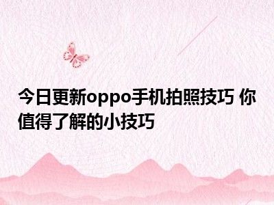 目前上述的内容应该能够为大家解答出大家对于oppo手机拍照技巧 你值得了解的小技巧的疑惑了,所以如果大家还想要了解更多的知识内容,也可以关注本站其他文章进行了解哦。