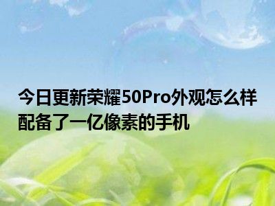 目前上述的内容应该能够为大家解答出大家对于荣耀50Pro外观怎么样,配备了一亿像素的手机的疑惑了,所以如果大家还想要了解更多的知识内容,也可以关注本站其他文章进行了解哦。