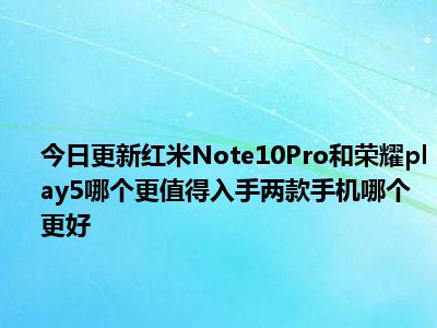 目前上述的内容应该能够为大家解答出大家对于红米Note10Pro和荣耀play5哪个更值得入手,两款手机哪个更好的疑惑了,所以如果大家还想要了解更多的知识内容,也可以关注本站其他文章进行了解哦。