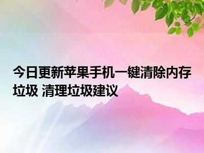 目前上述的内容应该能够为大家解答出大家对于苹果手机一键清除内存垃圾 清理垃圾建议的疑惑了,所以如果大家还想要了解更多的知识内容,也可以关注本站其他文章进行了解哦。