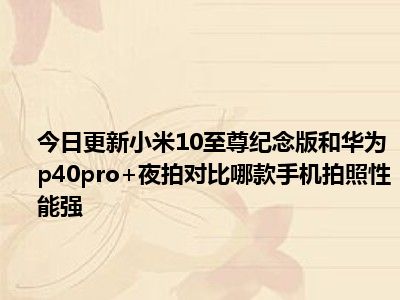 小米10至尊纪念版和华为p40pro+,这两款手机的拍照性能都十分强大,那么小编今天就为大家带来了,相关的夜拍实测分析,一起来看看吧!