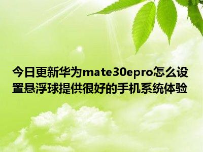 目前上述的内容应该能够为大家解答出大家对于华为mate30epro怎么设置悬浮球,提供很好的手机系统体验的疑惑了,所以如果大家还想要了解更多的知识内容,也可以关注本站其他文章进行了解哦。