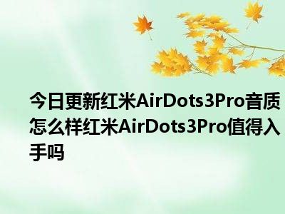 目前上述的内容应该能够为大家解答出大家对于红米AirDots3Pro音质怎么样,红米AirDots3Pro值得入手吗的疑惑了,所以如果大家还想要了解更多的知识内容,也可以关注本站其他文章进行了解哦。