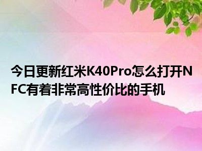 目前上述的内容应该能够为大家解答出大家对于红米K40Pro怎么打开NFC,有着非常高性价比的手机的疑惑了,所以如果大家还想要了解更多的知识内容,也可以关注本站其他文章进行了解哦。