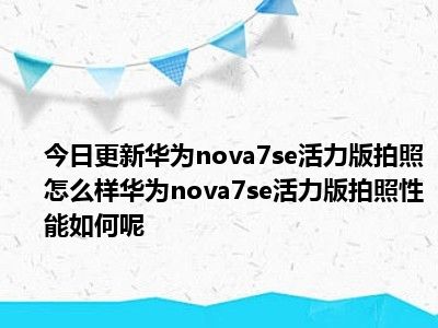 目前上述的内容应该能够为大家解答出大家对于华为nova7se活力版拍照怎么样华为nova7se活力版拍照性能如何呢的疑惑了,所以如果大家还想要了解更多的知识内容,也可以关注本站其他文章进行了解哦。