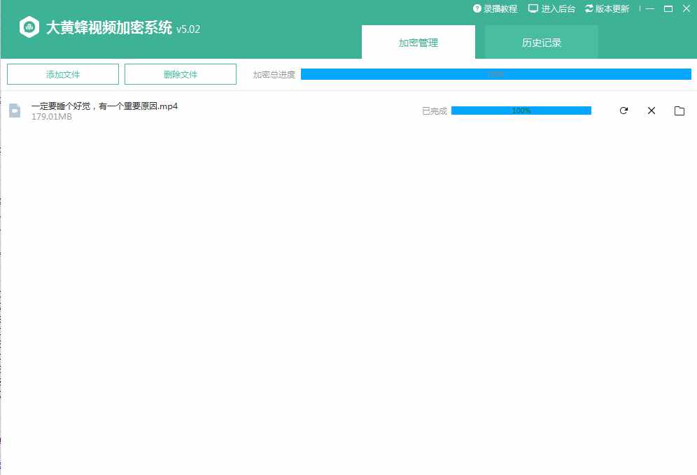 等待加密进度条加载到100%后,提示加密完成,可查看加密好的手机视频文件。