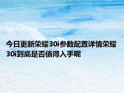 目前上述的内容应该能够为大家解答出大家对于荣耀30i参数配置详情,荣耀30i到底是否值得入手呢的疑惑了,所以如果大家还想要了解更多的知识内容,也可以关注本站其他文章进行了解哦。