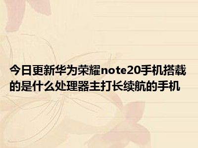 目前上述的内容应该能够为大家解答出大家对于华为荣耀note20手机搭载的是什么处理器主打长续航的手机的疑惑了,所以如果大家还想要了解更多的知识内容,也可以关注本站其他文章进行了解哦。