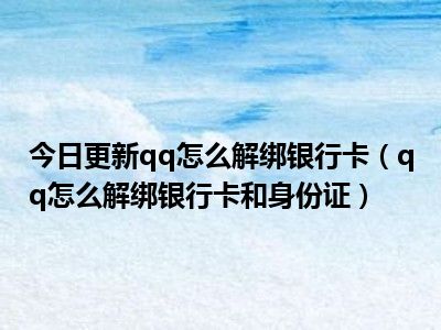 目前上述的内容应该能够为大家解答出大家对于qq怎么解绑银行卡(qq怎么解绑银行卡和身份证)的疑惑了,所以如果大家还想要了解更多的知识内容,也可以关注本站其他文章进行了解哦。