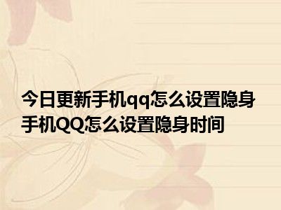 目前上述的内容应该能够为大家解答出大家对于手机qq怎么设置隐身 手机QQ怎么设置隐身时间的疑惑了,所以如果大家还想要了解更多的知识内容,也可以关注本站其他文章进行了解哦。