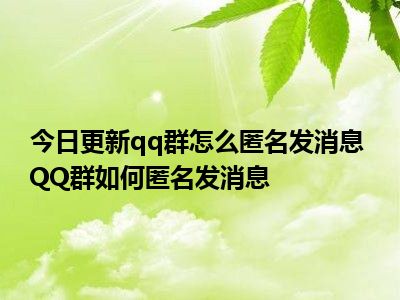 目前上述的内容应该能够为大家解答出大家对于qq群怎么匿名发消息 QQ群如何匿名发消息的疑惑了,所以如果大家还想要了解更多的知识内容,也可以关注本站其他文章进行了解哦。