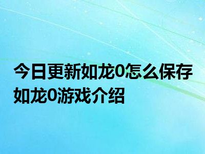 目前上述的内容应该能够为大家解答出大家对于如龙0怎么保存 如龙0游戏介绍的疑惑了,所以如果大家还想要了解更多的知识内容,也可以关注本站其他文章进行了解哦。