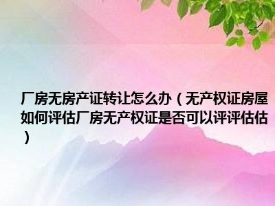 导读 目前大家应该是对无产权证房屋如何评估厂房无产权证是否可以评评估估比较感兴趣的,所以今天好房网小编CC就来为大家整理了一些关于无产权证