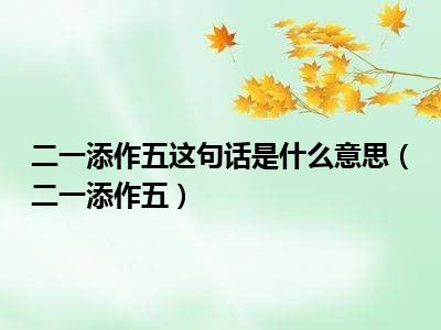 导读 相信目前很多小伙伴对于二一添作五都比较感兴趣,那么小搜今天在网上也是收集了一些与二一添作五相关的信息来分享给大家,希望能够帮助到大